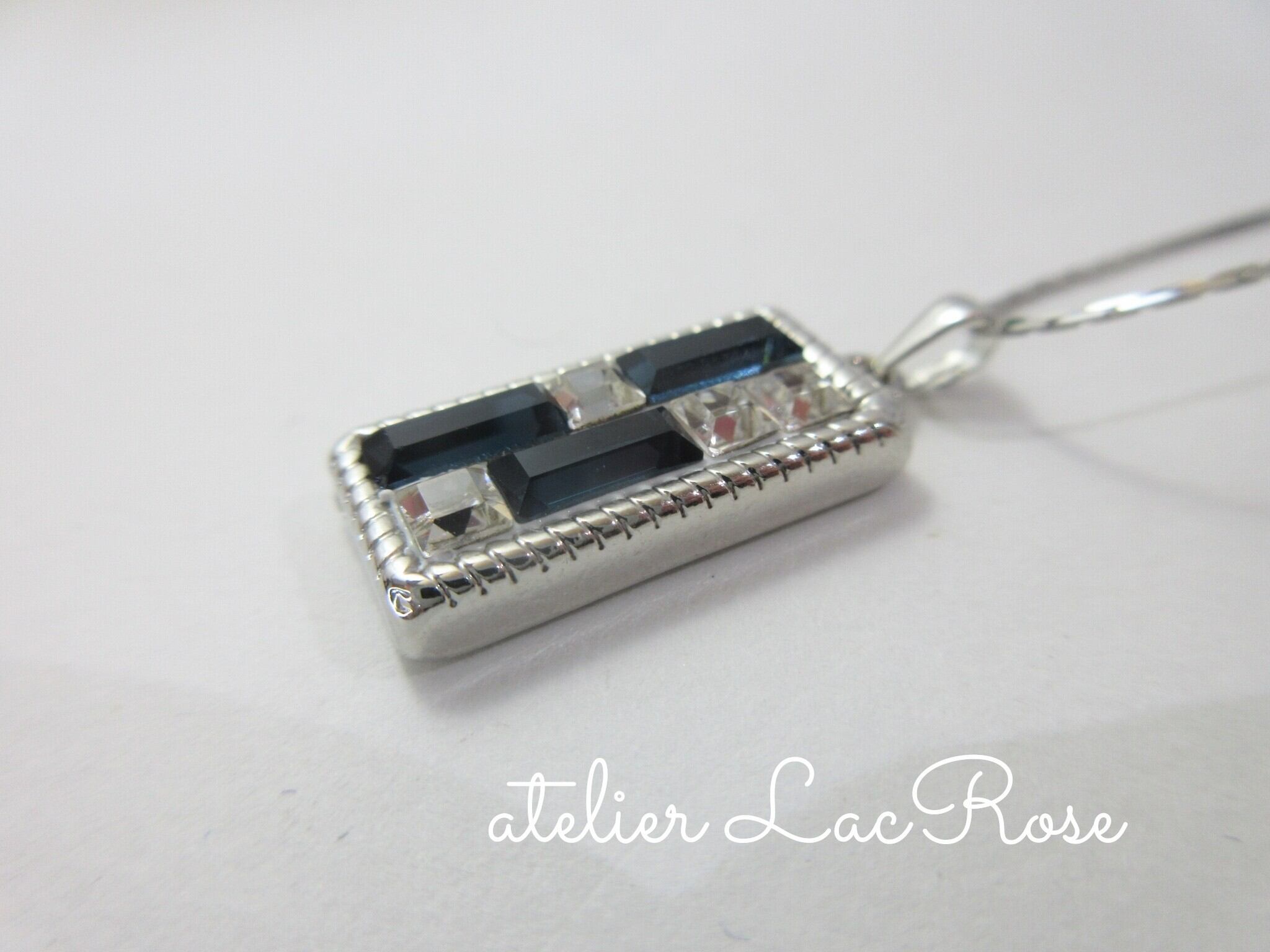 四角いスワロフスキークリスタルを組み合わせてペンダントトップに仕上げました。