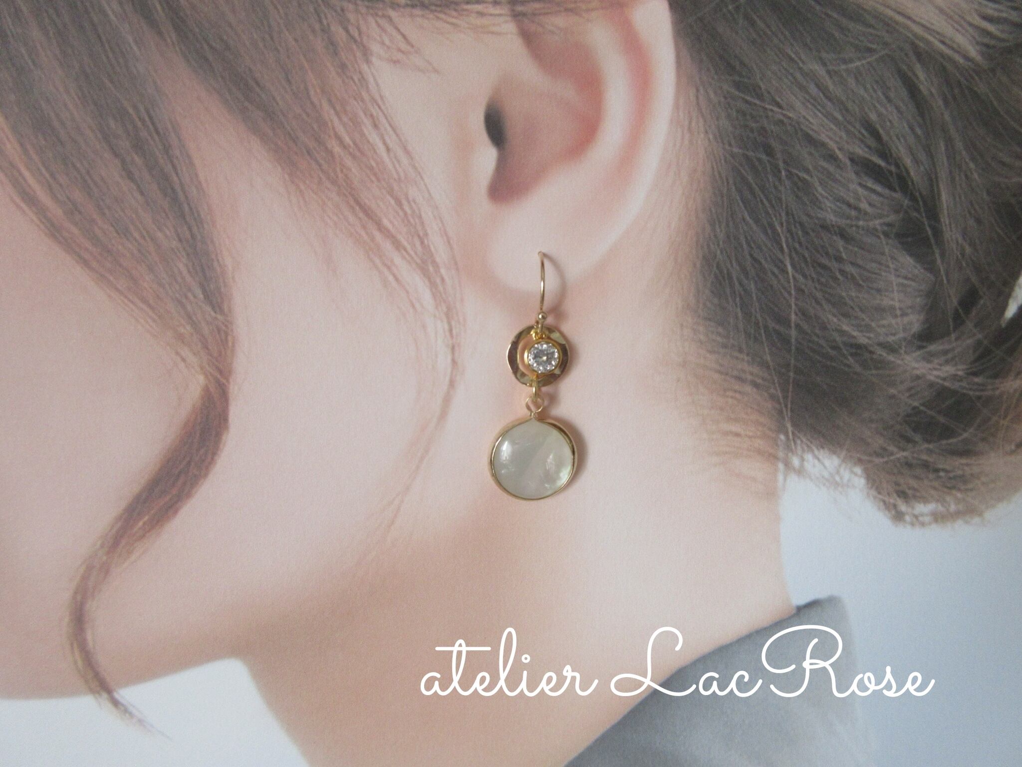 白蝶貝のようなアクリルパーツがゆらゆら揺れる夏向けピアス。
