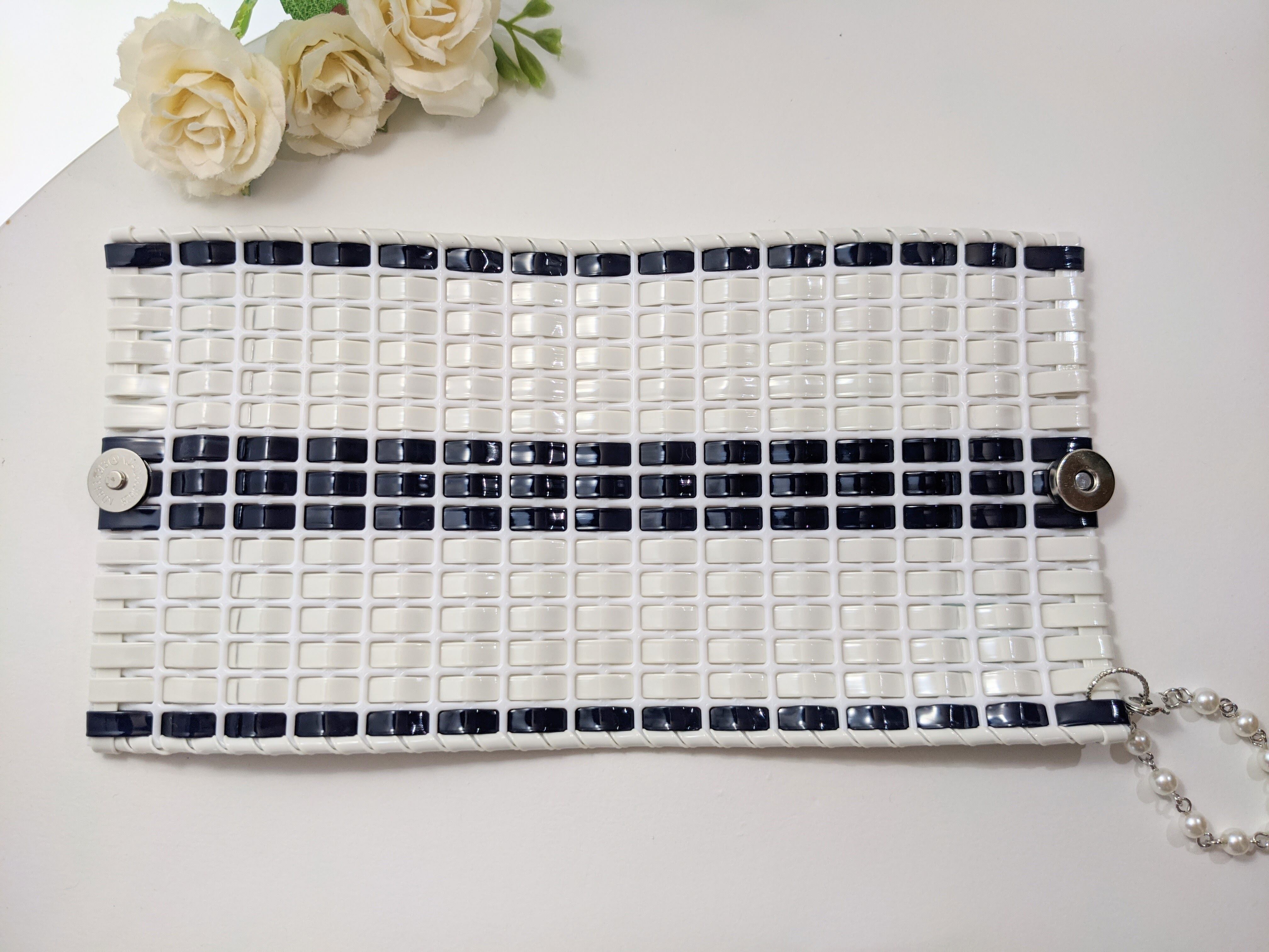 ジュエリーバッグ作りで使用するラメルヘンテープを使ったマスクケース。